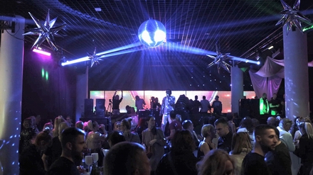 razglas s rasvjetom, mašinama za dim u boji, disko kuglom …